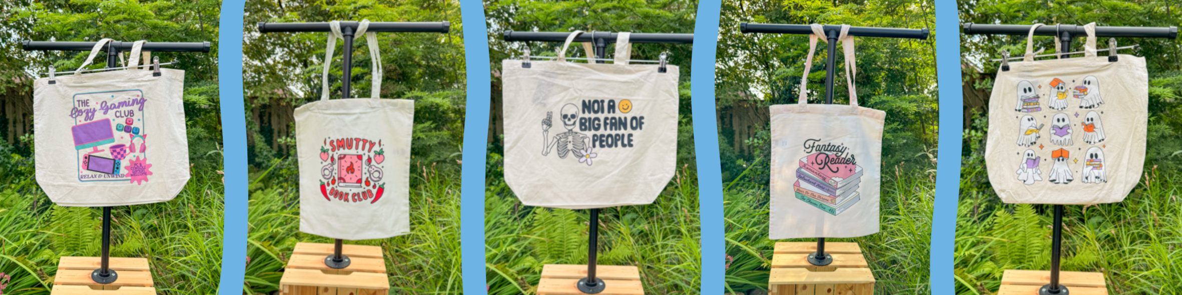 Looking for a unique way to carry your things around? Look no further than our linen bags featuring fun designs from bookish themes and humorous quotes to cozy gaming styles. The bags are in lot's of vibrant colours and fun themes.
